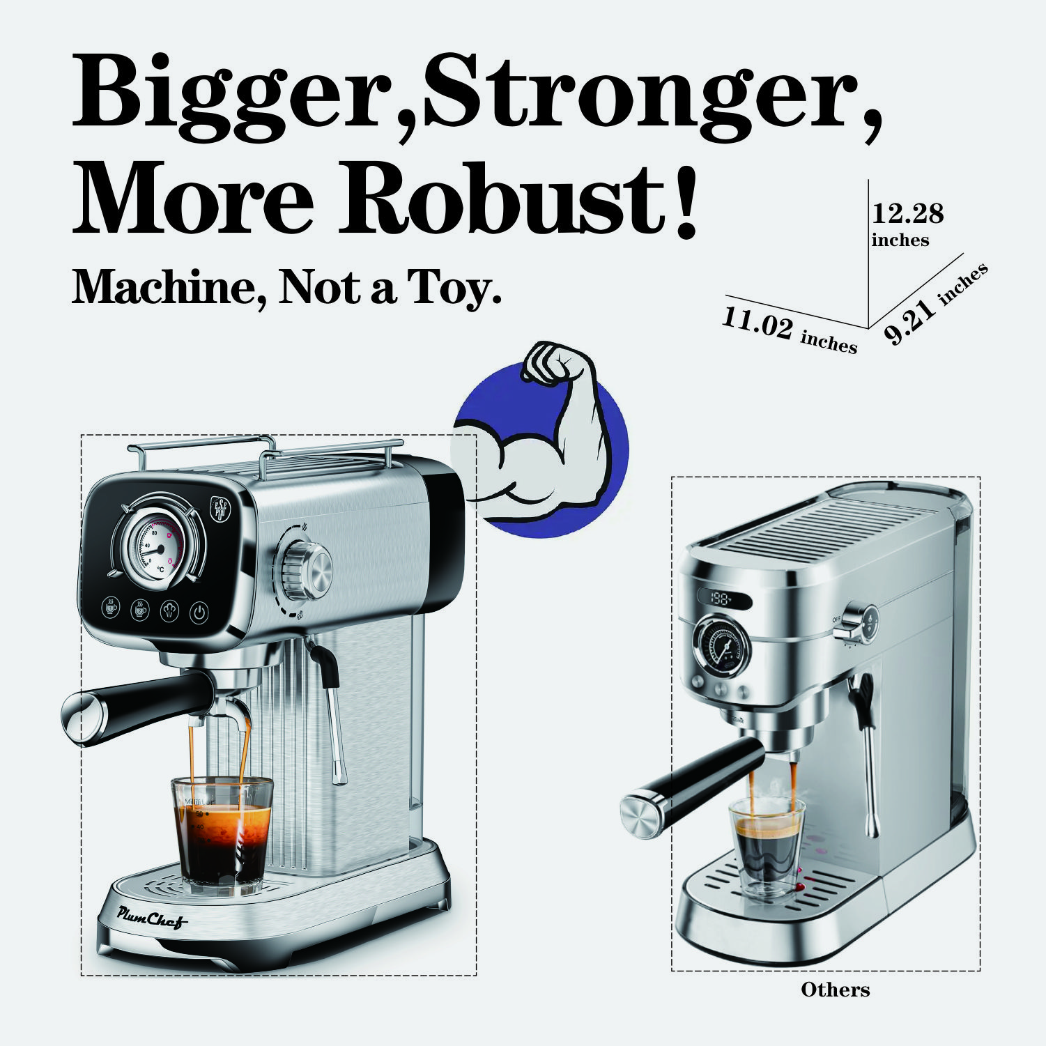 [Compact and Stylish Design]The size is 6.3*13*14.17 in, compact design make it easy to place in both the home and office; Stainless steel casing, styled design, equipped with a rotatable Milk Frother Steam Wand which you can texture creamy, rich microfoam milk to create amazing milk foam art and enhance the flavor of your brews, the 34 oz water tank allows you to brew multiple cups, which is detachable for easy refilling; and the drip tray is easy cleaning. It is the best choice for coffee lovers.